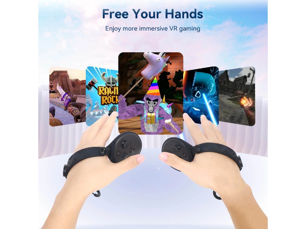hráče VR, kteří chtějí pohodlnější úchop, spolehlivou ochranu ovladačů a možnost hrát bez přerušení kvůli bateriím – i při delších a intenzivních herních maratonech.