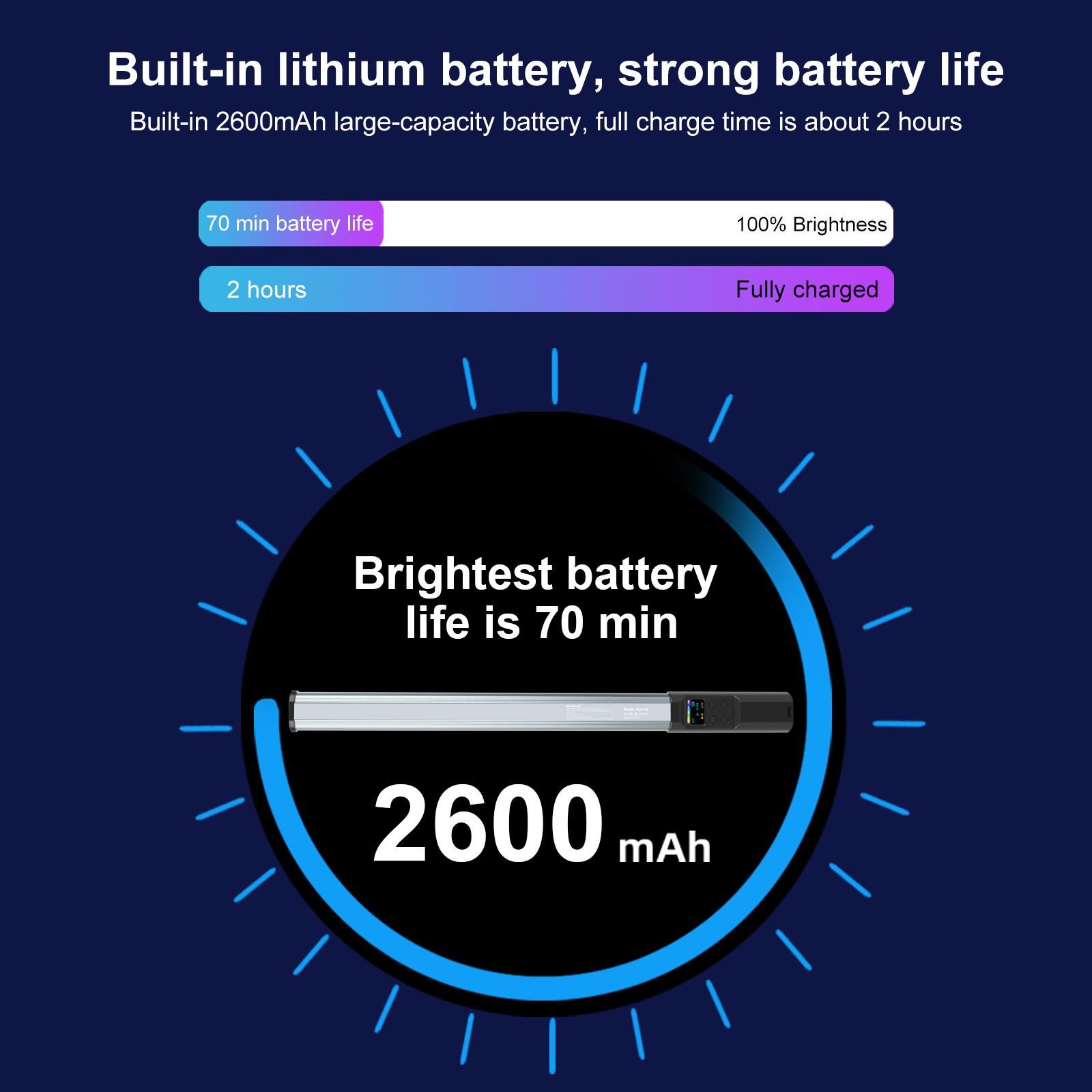 - Dlouhá výdrž a rychlé nabíjení: vestavěná 2600mAh baterie vydrží až 70 minut při plném výkonu a za 2 hodiny je opět připravená k použití.