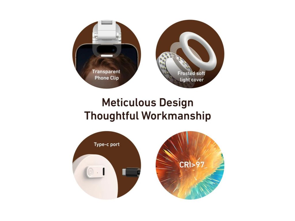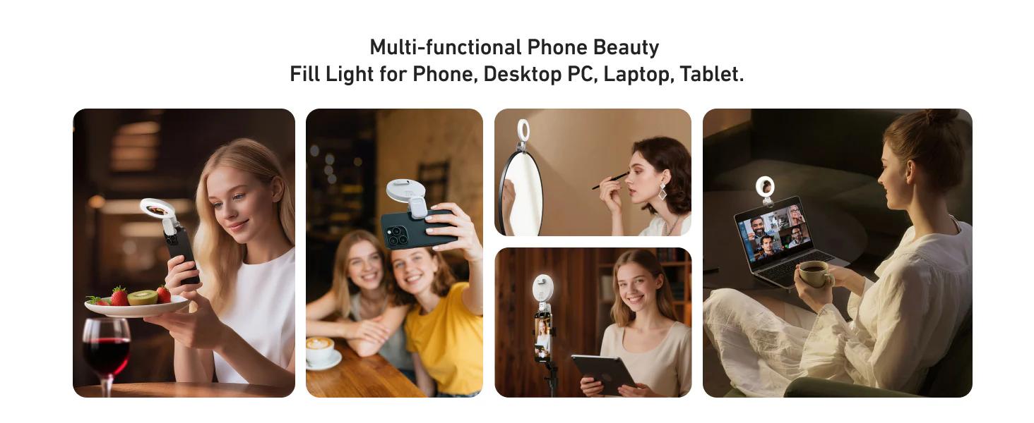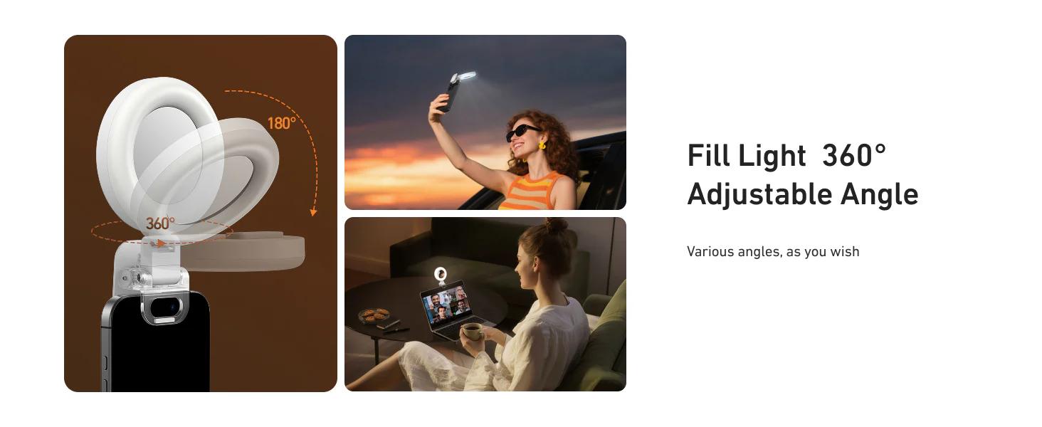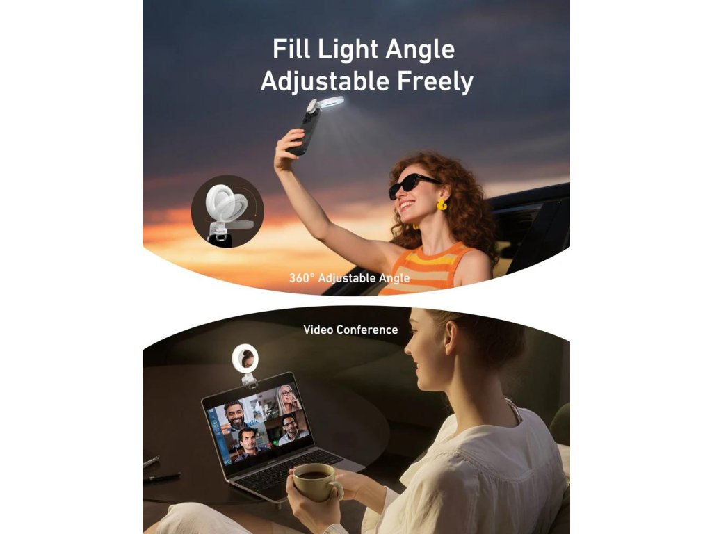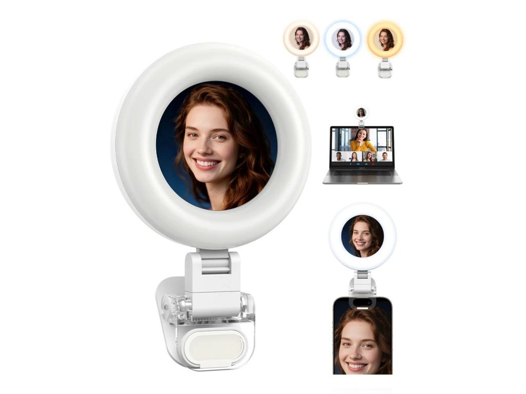 Díky jednoduchému ovládání, 360° nastavitelnému úhlu a praktickému klipu jej snadno připevníte na telefon, notebook nebo tablet. Je ideální volbou pro tvůrce obsahu, vloggery i uživatele, kteří chtějí profesionální světlo při videohovorech.