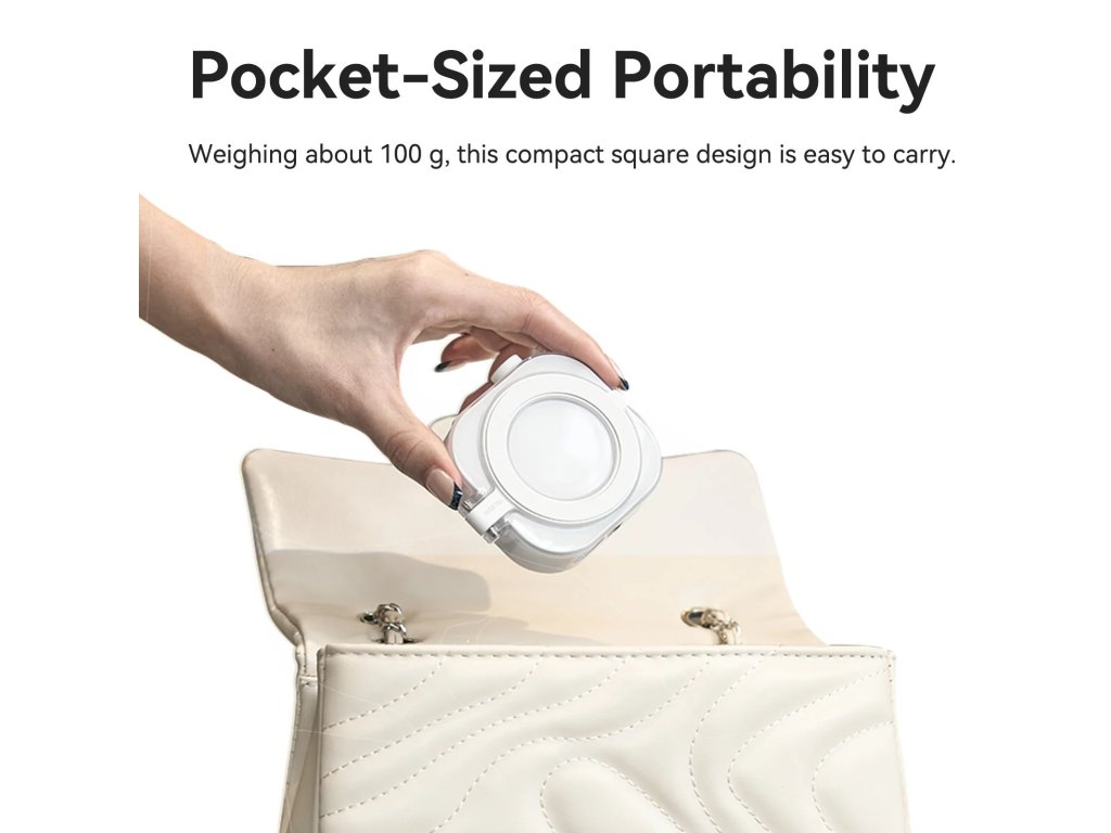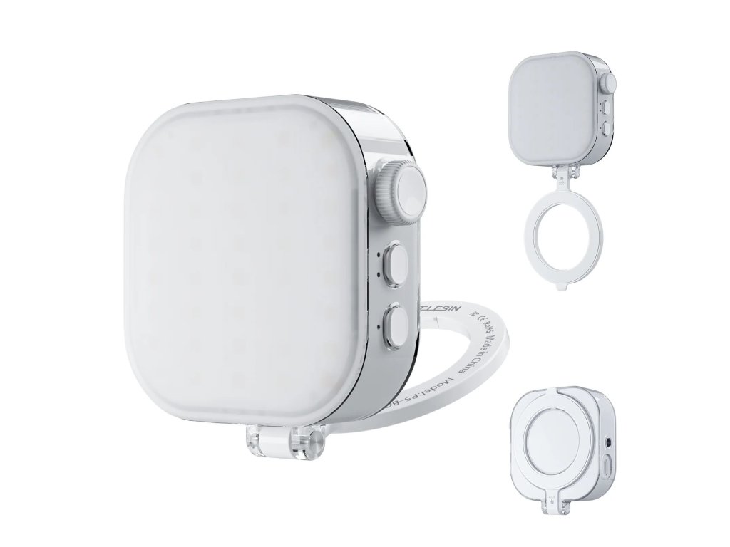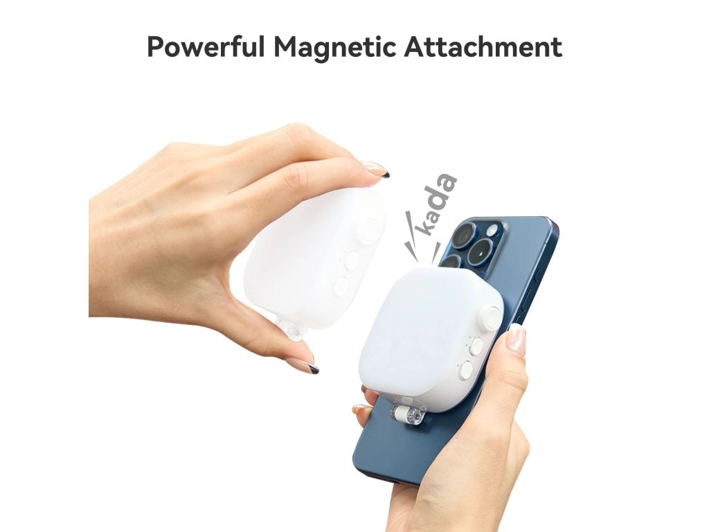- Magnetické uchycení MagSafe: Světlo přichytíte přímo na zadní stranu telefonu s MagSafe nebo pomocí samolepicího kroužku na jakýkoliv jiný model.