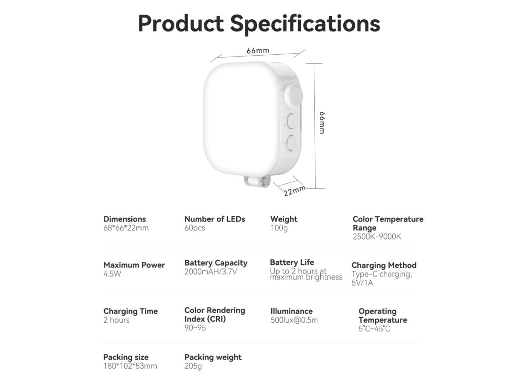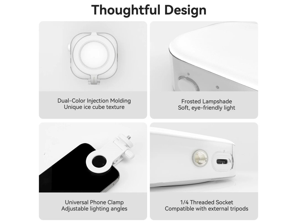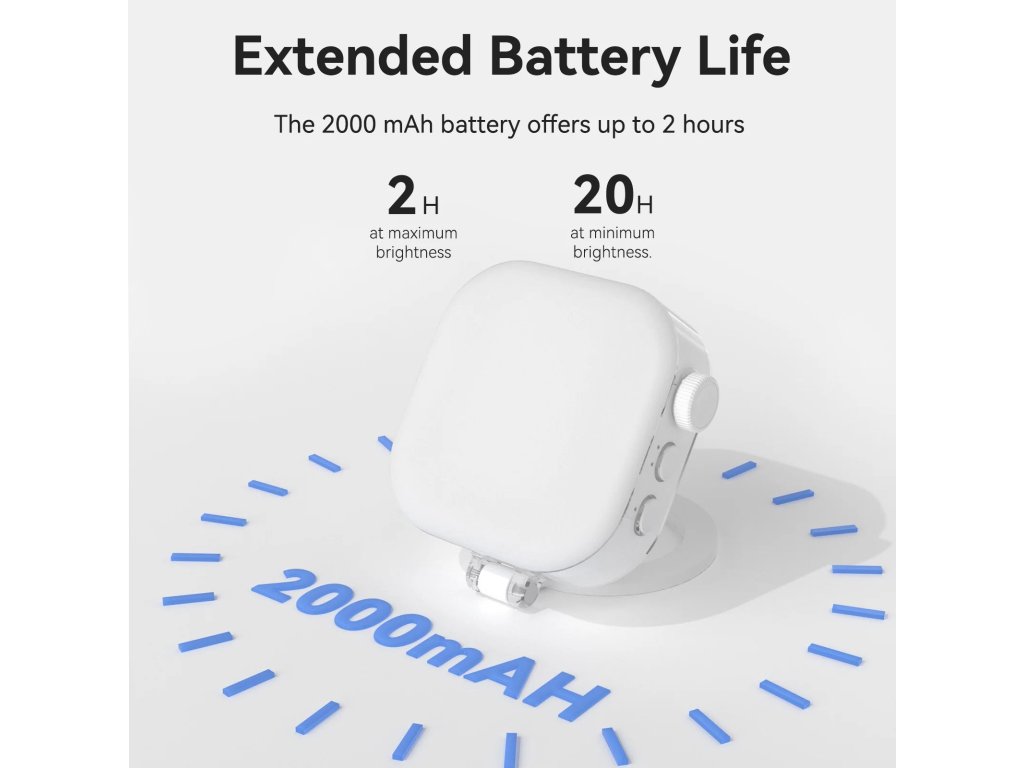 - Dlouhá výdrž baterie: Integrovaná 2000 mAh baterie nabízí až 20 hodin svícení při nízkém jasu nebo 2 hodiny při maximálním výkonu.