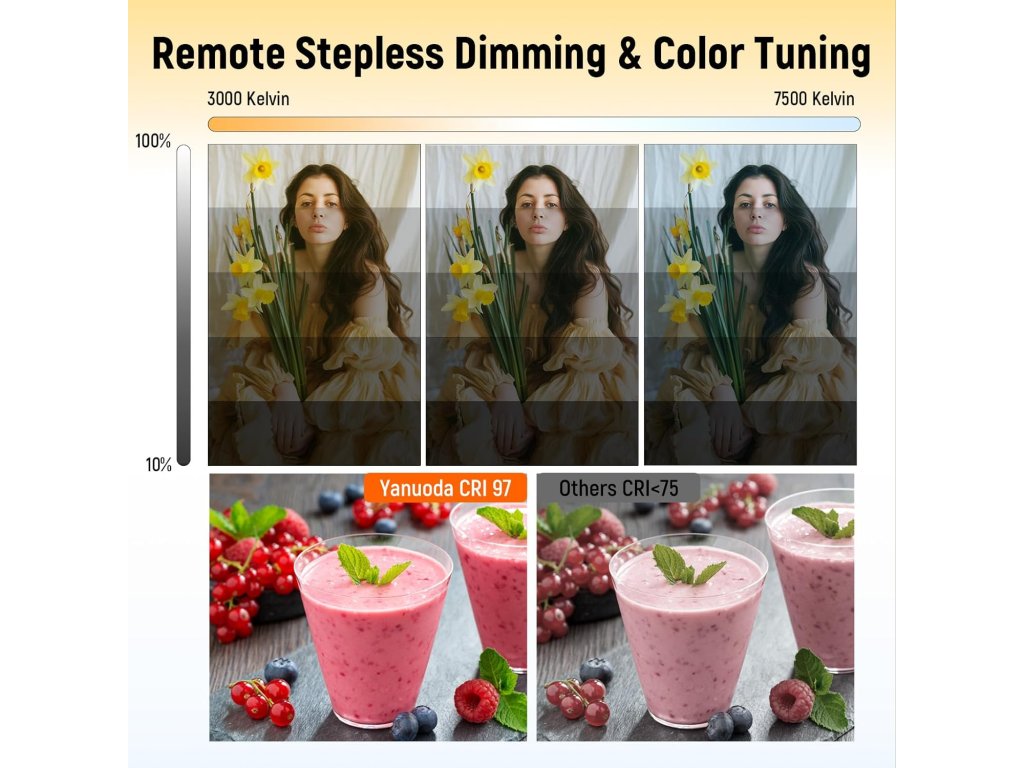 - Nastavitelná atmosféra: pomocí dálkového ovladače plynule regulujete jas a volíte ze 3 teplot barev (3000 K, 5500 K, 7500 K).