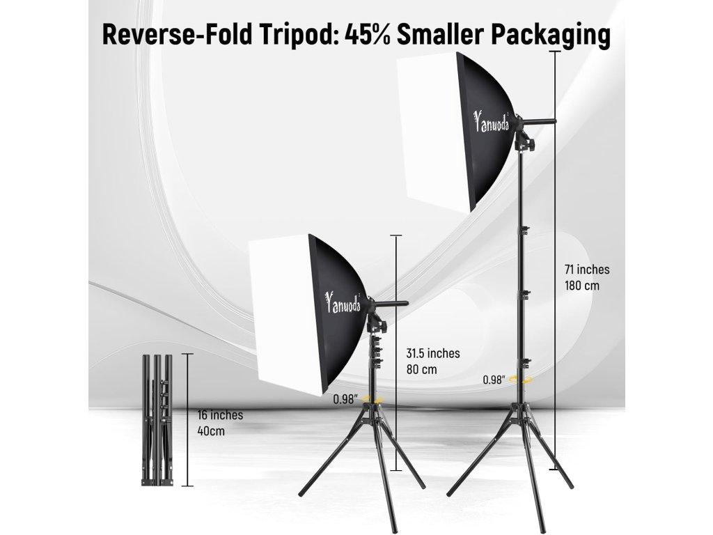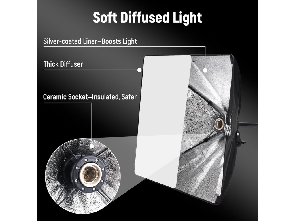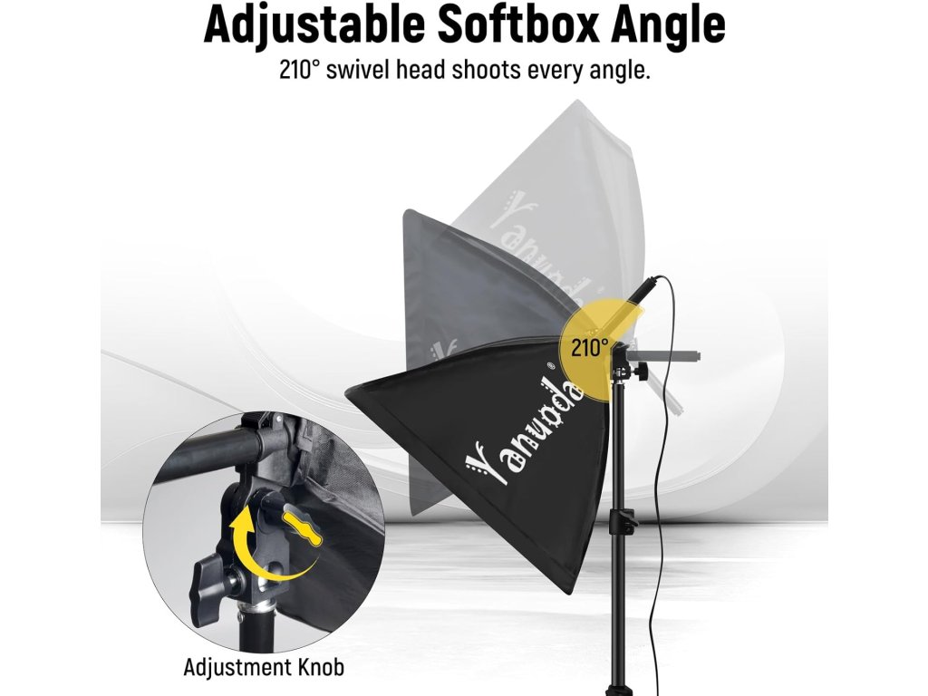 - Flexibilní úhel svícení: hlavu softboxu lze naklápět až o 180° a nastavit světlo přesně podle potřeby.