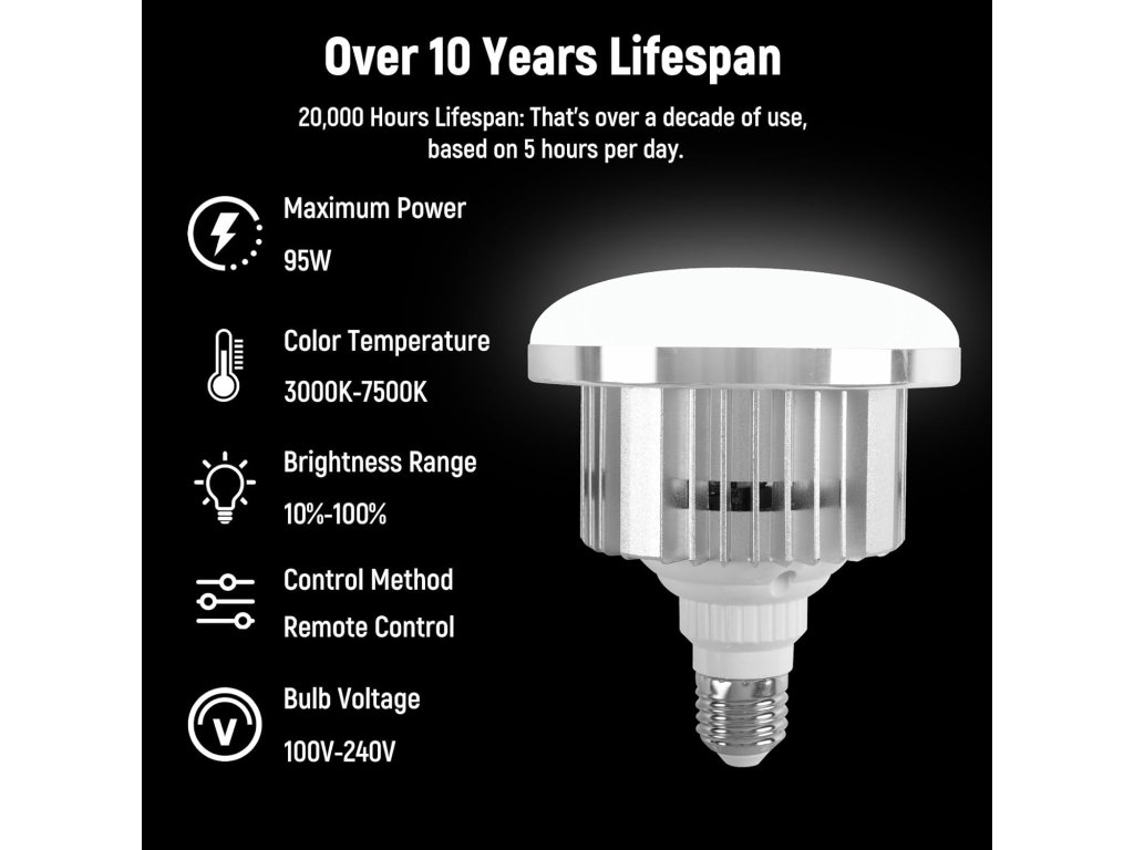 - Výkonná LED lampa: 95W s paticí E27 poskytuje dostatek světla i pro náročnější projekty.
