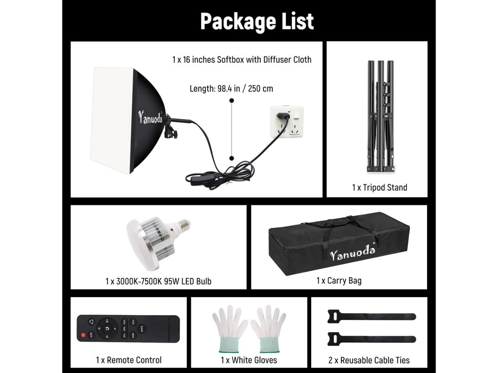 - Kompletní sada: součástí je stativ, softbox, LED lampa, difuzér, dálkový ovladač a praktická taška pro snadné přenášení.