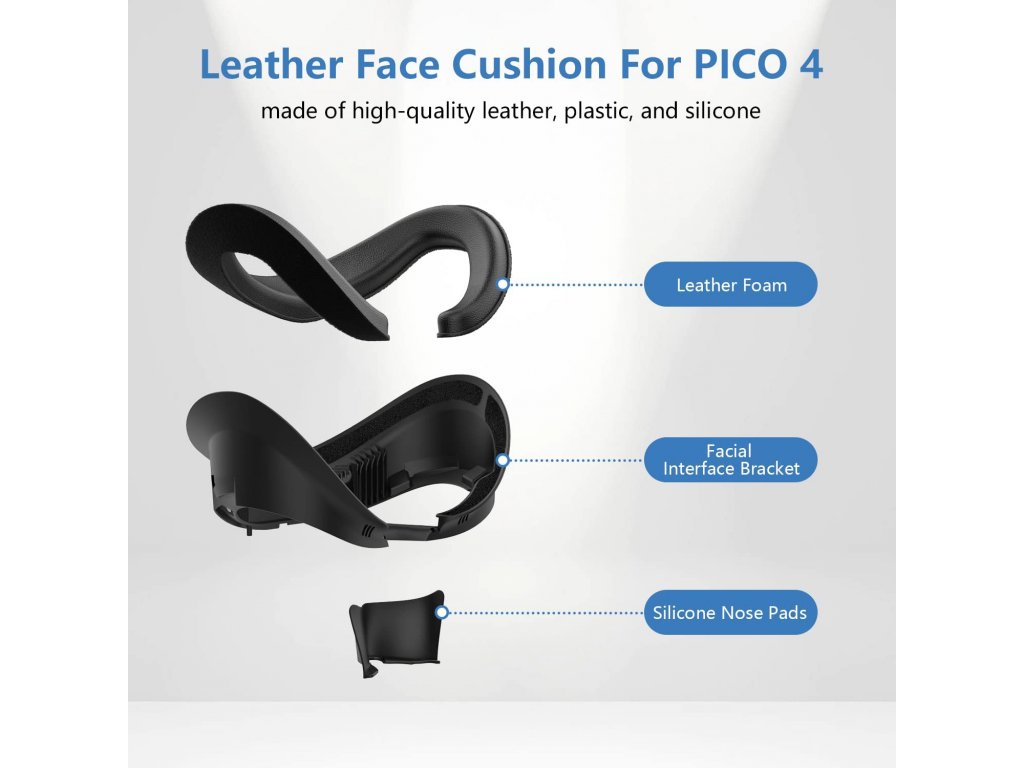 Vyměňte nepohodlnou tvrdou a nehygienickou obličejovou vložku vašeho VR headsetu PICO 4 za tento komfortní kožený AVMR obličejový set, který že nejen výrazně zvýší pohodlí headsetu na vašem obličeji, ale také kompletně zamezí přísunu okolního světla do čoček a s tím spojených nepříjemných odrazům a jako bonus vás o trochu více přiblíží k čočkám čímž získáte větší FOV neboli širší zorné pole až o znatelných 14° a tedy více obrazu a méně černých okrajů. Kožený povrch také snadno umožňuje utření potu bez jeho vsakování a půjčování VR ostatním hráčům. Sám jako majitel VR musím říci, že toto je pro PICO 4 doslova nutností a velkým zpříjemněním hraní.
