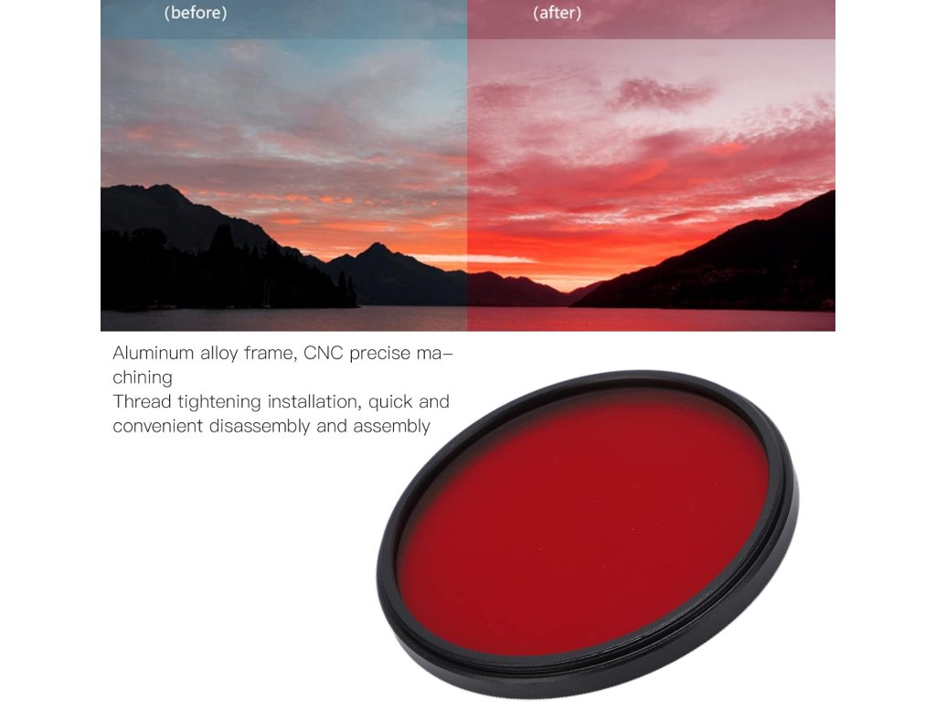 Červený filtr o průměru 52 mm je ideální pro fotografy, kteří chtějí zvýraznit červené odstíny ve scéně a dodat snímkům větší hloubku a atmosféru. Pomáhá zvýraznit detaily při fotografování západů slunce, javorových listů, večerní oblohy nebo pouštních dun.