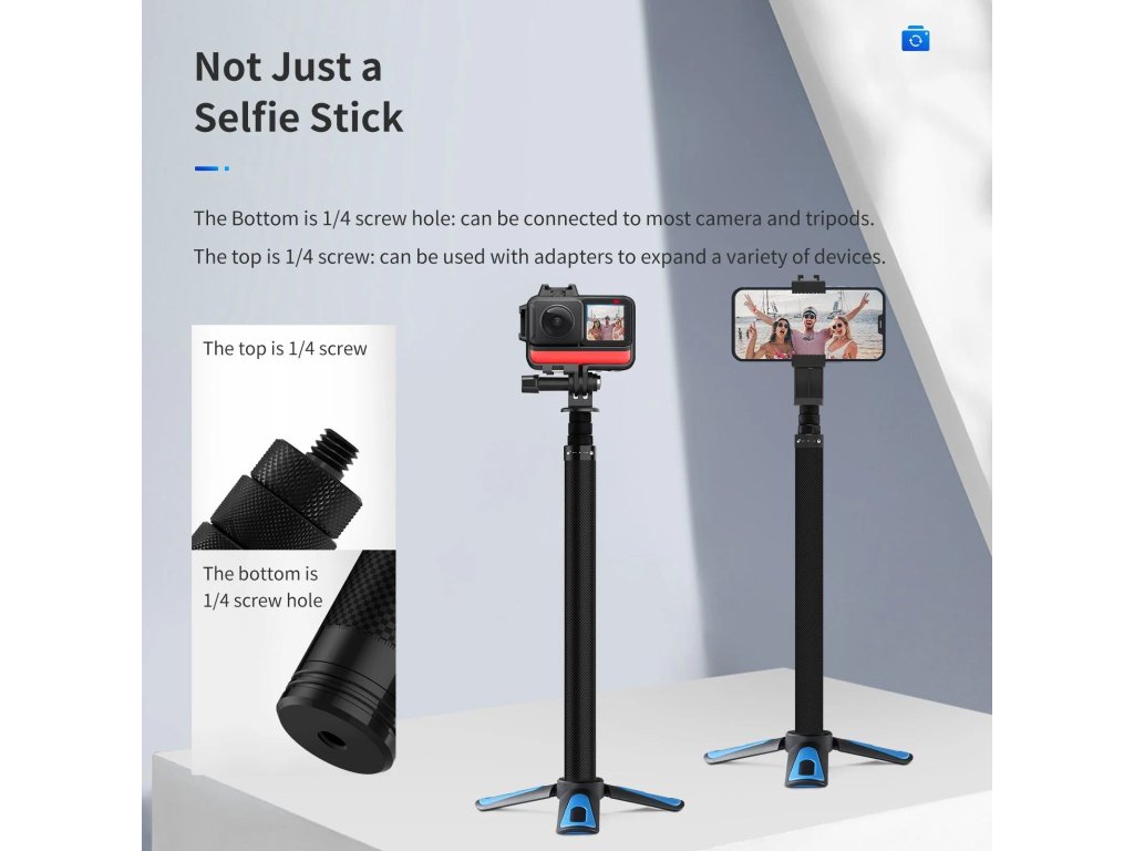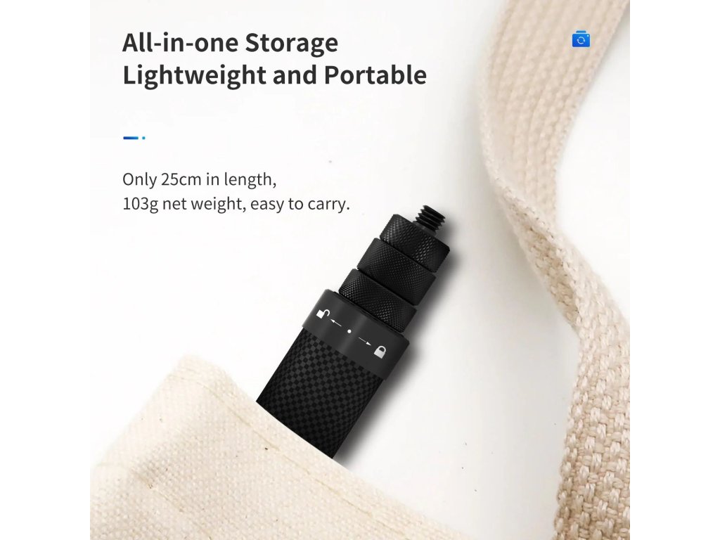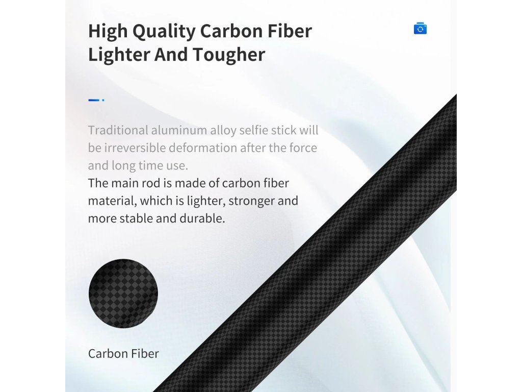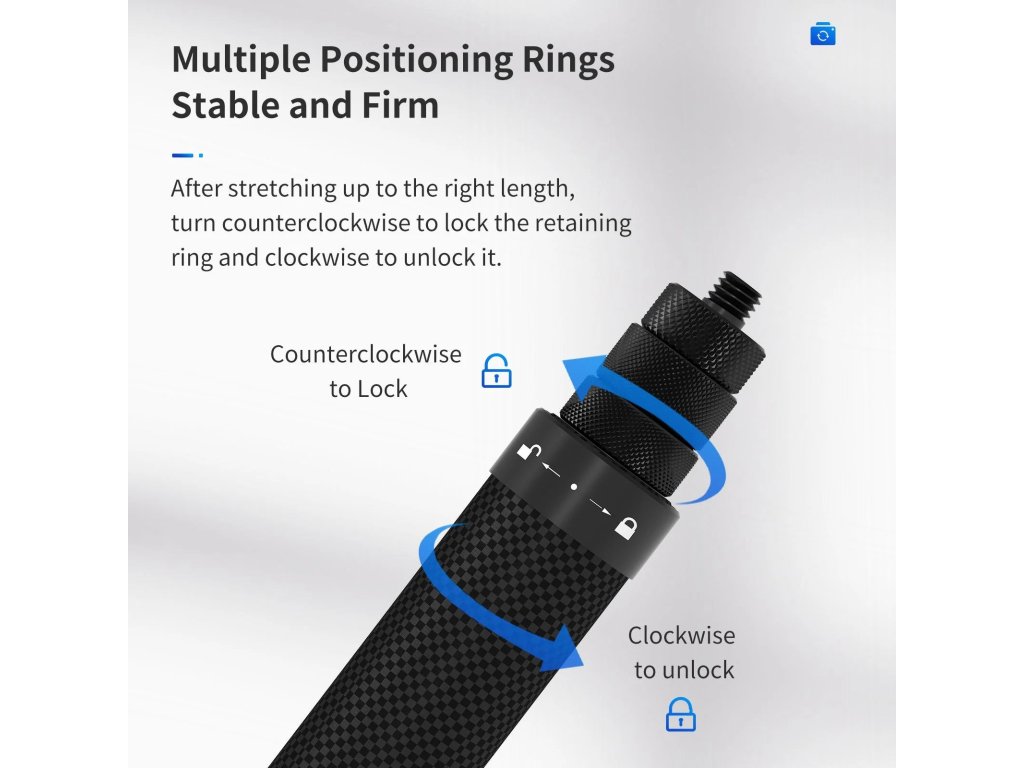 Lehkost, pevnost a naprostá volnost při natáčení. TELESIN karbonová neviditelná selfie tyč o délce 116 cm je ideálním doplňkem pro akční kamery Insta360, GoPro MAX a další modely. Díky preciznímu zpracování z karbonových vláken je mimořádně lehká, ale přitom pevná a odolná vůči ohybu i vibracím.