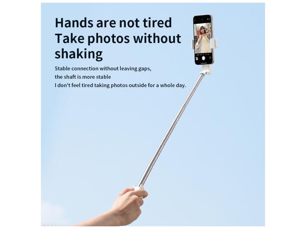 - Multifunkční využití: selfie tyč se promění i v stojánek na videohovory či streamování.