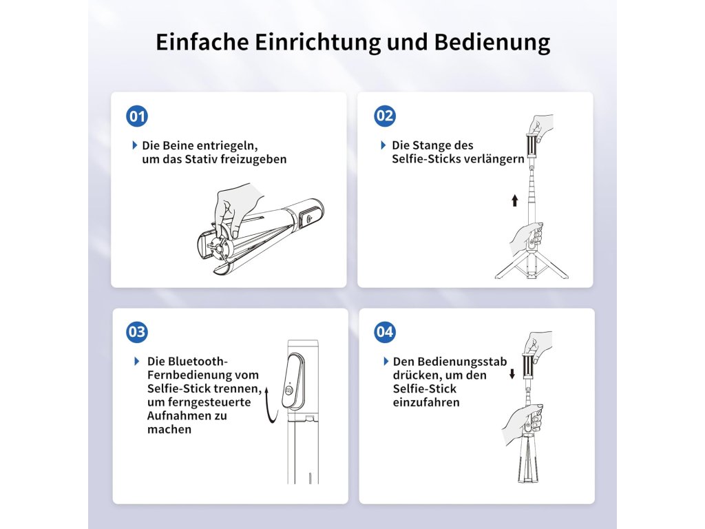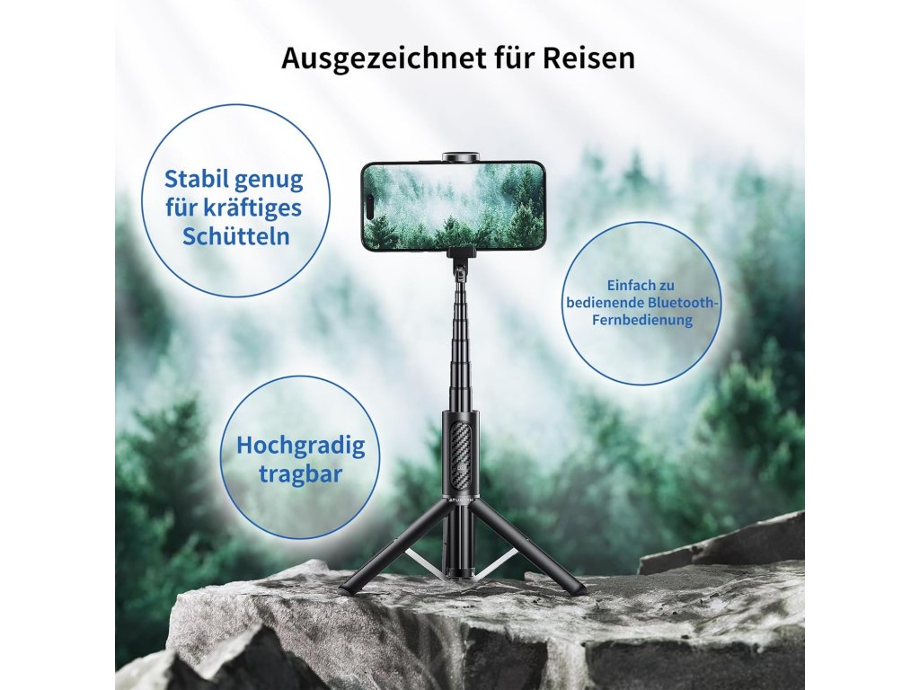 Praktická selfie tyč s integrovaným stativem a odnímatelným Bluetooth ovladačem. Díky své kompaktní konstrukci, nízké hmotnosti a robustnímu hliníkovému provedení je ideální pro cestování, vlogování i pořizování skupinových snímků. Hmotnost 172 g.