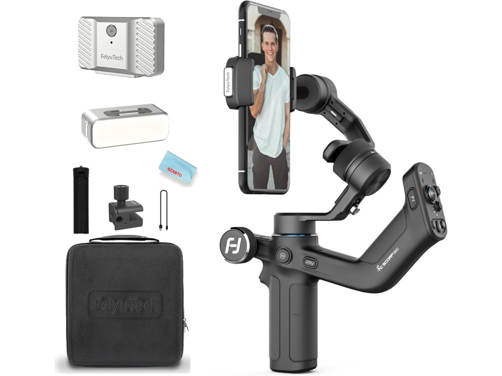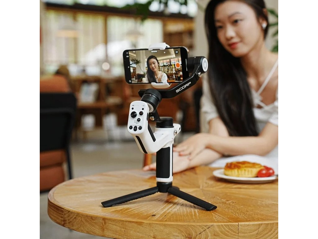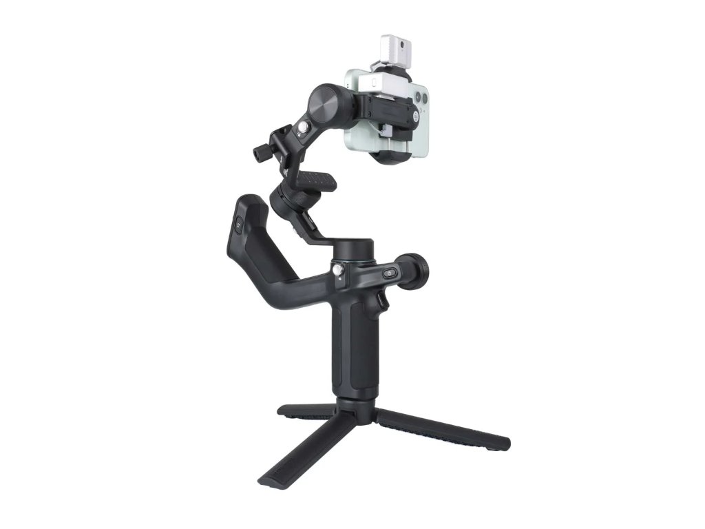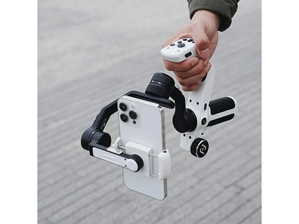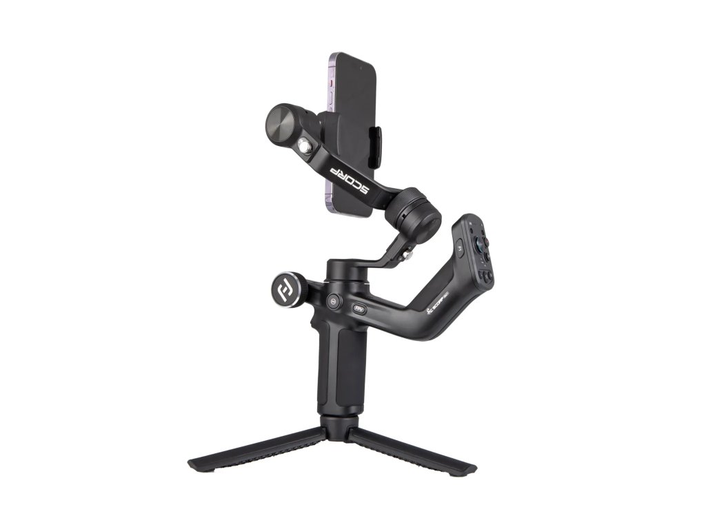 FeiyuTech Scorp Mini P Combo je výkonný tříosý stabilizátor pro chytré telefony, který zvládne i velké modely jako iPhone 16 Pro Max nebo vlajkové Androidy. Díky nosnosti až 520 g, dlouhé výdrži baterie a chytrým funkcím nabízí profesionální stabilitu v kompaktním těle.