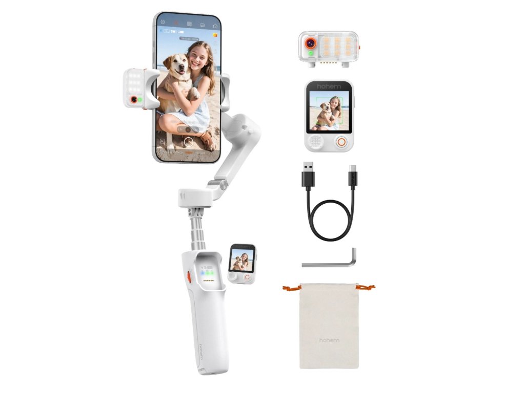 HOHEM iSteady V3 Ultra Bílý - malý cestovní AI stabilizátor telefonu se sledovám čehokoliv bez applikace