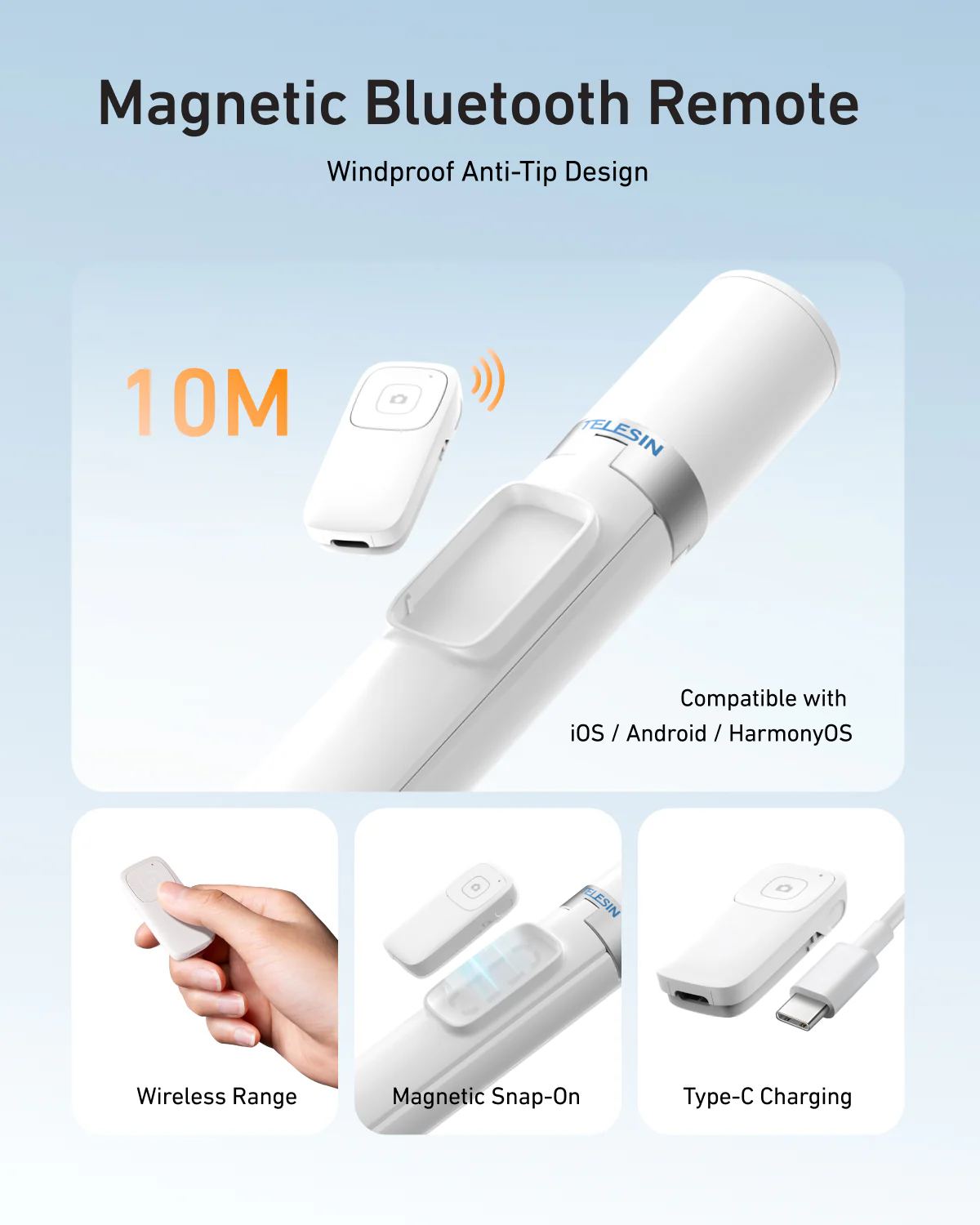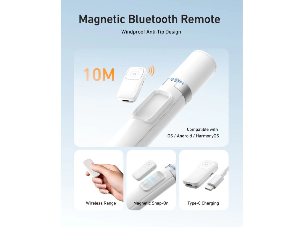 Rozložte, postavte, foťte – během pár sekund. TELESIN přináší novou generaci přenosného stativu, který se po vytažení sám rozvine a okamžitě stojí připravený k akci. Díky výšce až 180 cm, dálkové Bluetooth spoušti a chytrému držáku s horními sáňkami pro světlo nebo mikrofon se stává ideálním společníkem na cesty, vlogování i každodenní focení.