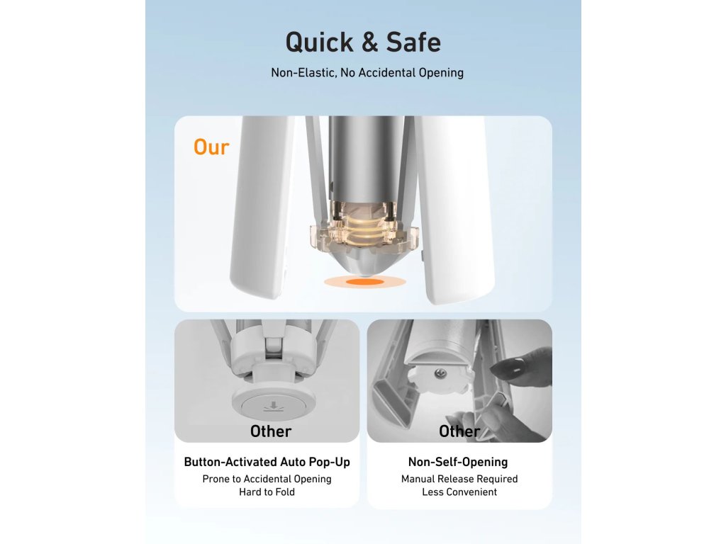 - Automatické samorozevření: unikátní konstrukce, která se po vysunutí sama rozloží do stabilní trojnožky – žádné zdlouhavé nastavování.