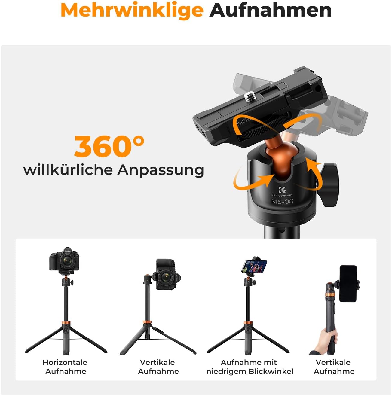 - Kulová hlava s 360° nastavením: Plynulé otáčení a naklánění pro přesné zarámování záběru.