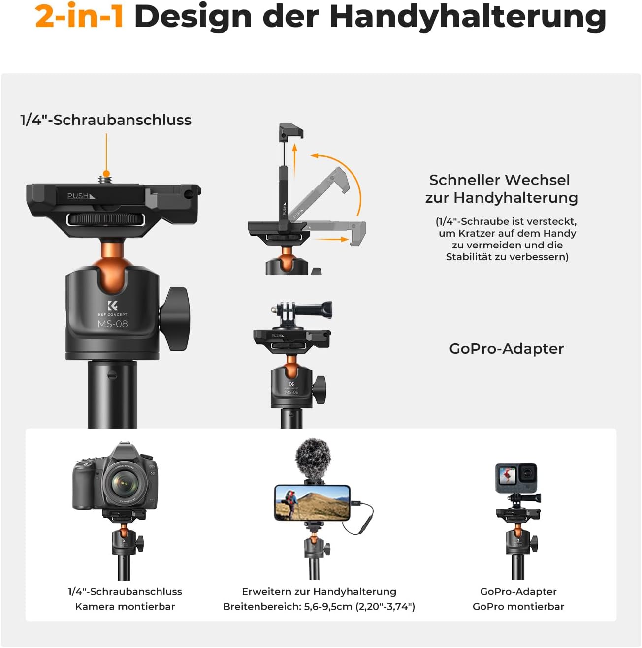 - Univerzální kompatibilita: Vhodné pro smartphony, GoPro a další akční kamery i malé gimbaly (např. Osmo Pocket).