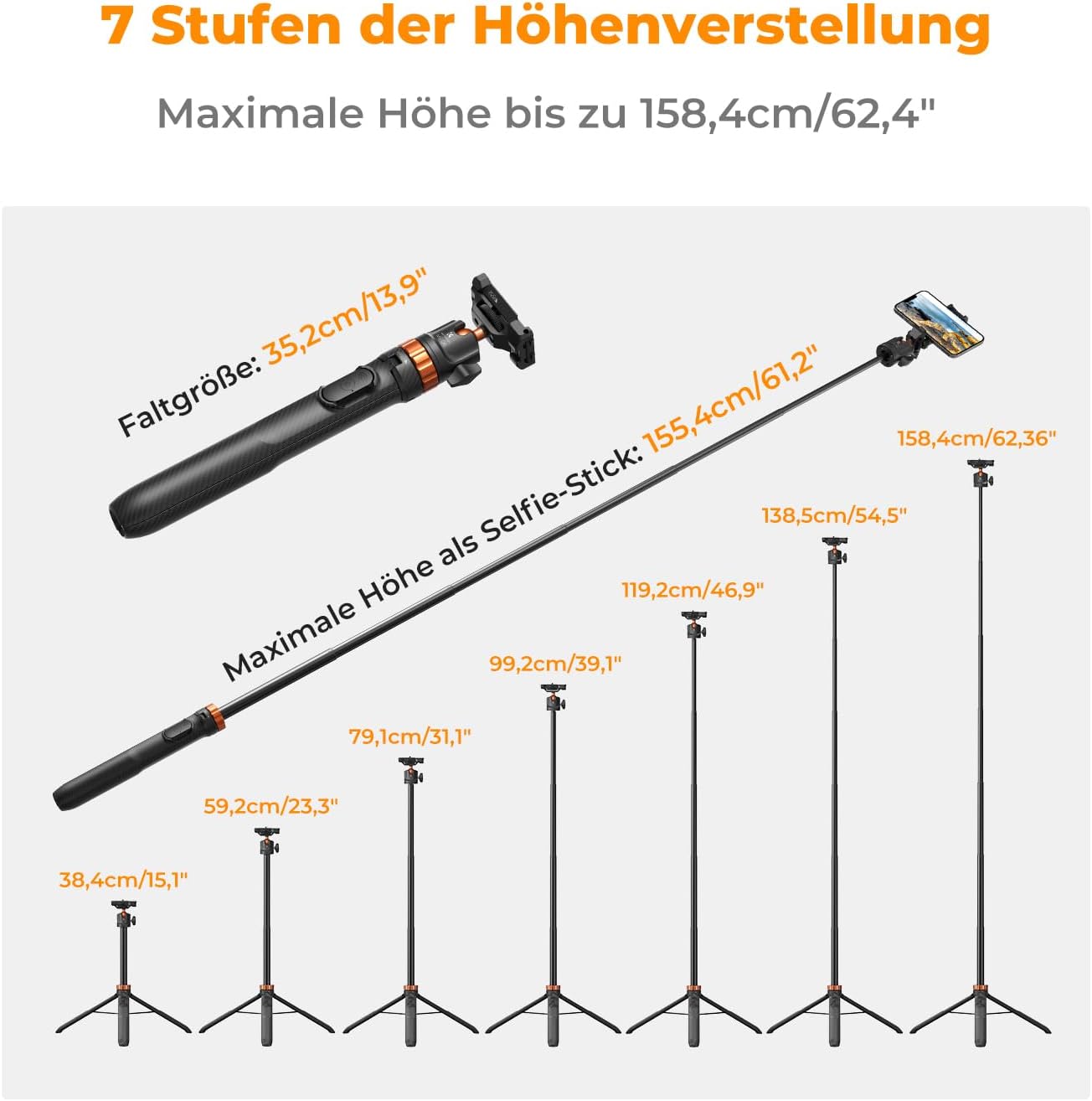 - Maximální výška až 158 cm: Ideální pro celotělové záběry, rozhovory i stabilní vlogování z větší dálky.