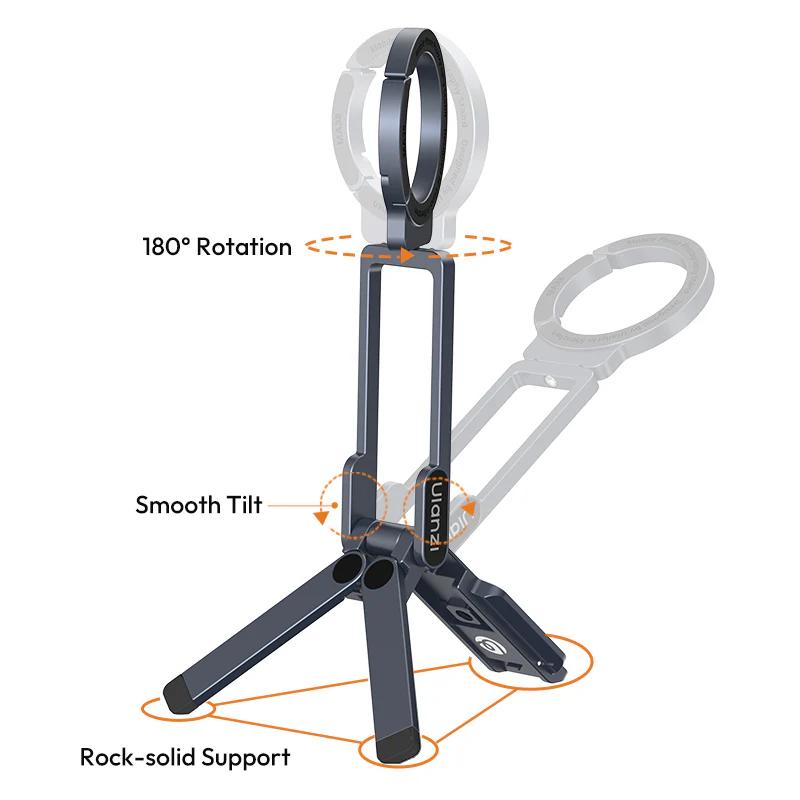 - Funkce mini stativu: Při rozložení nožiček se stojánek promění v malý tripod vhodný pro focení, natáčení nebo time-lapse.