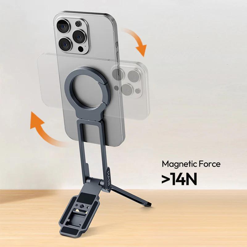 Konstrukce z hliníkové slitiny a silné magnety zajišťují pevné uchycení telefonu i při pohybu nebo manipulaci. Perfektní pro videohovory, sledování videí, tvorbu obsahu, focení ze stolu i hands-free používání telefonu doma nebo na cestách.