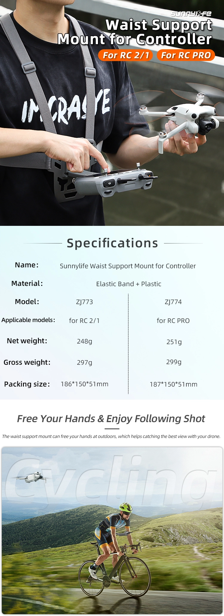 Umožní vám uvolnit ruce během používání dronu, což zlepšuje pohodlí při dlouhých natáčeních a pomáhá zachytit perfektní záběry. Držák je plně nastavitelný, takže si můžete přizpůsobit úhel ovladače podle potřeby. Díky skládacímu designu je snadné ho složit, když ho nepoužíváte. Elastický pás lze snadno odejmout pro čištění a výměnu. Pás s pěti přezkami zajišťuje bezpečné uchycení a je vhodný pro různé typy postav.