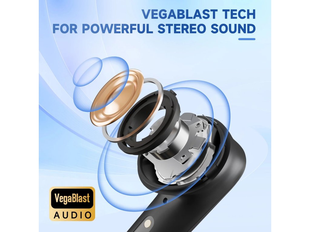 - VegaBlast tech pro silný zvuk: vícevrstvé PU + bionické vlákno, cívky z čisté mědi a magnety ze vzácných zemin pro hluboké basy a detailní zvuk.