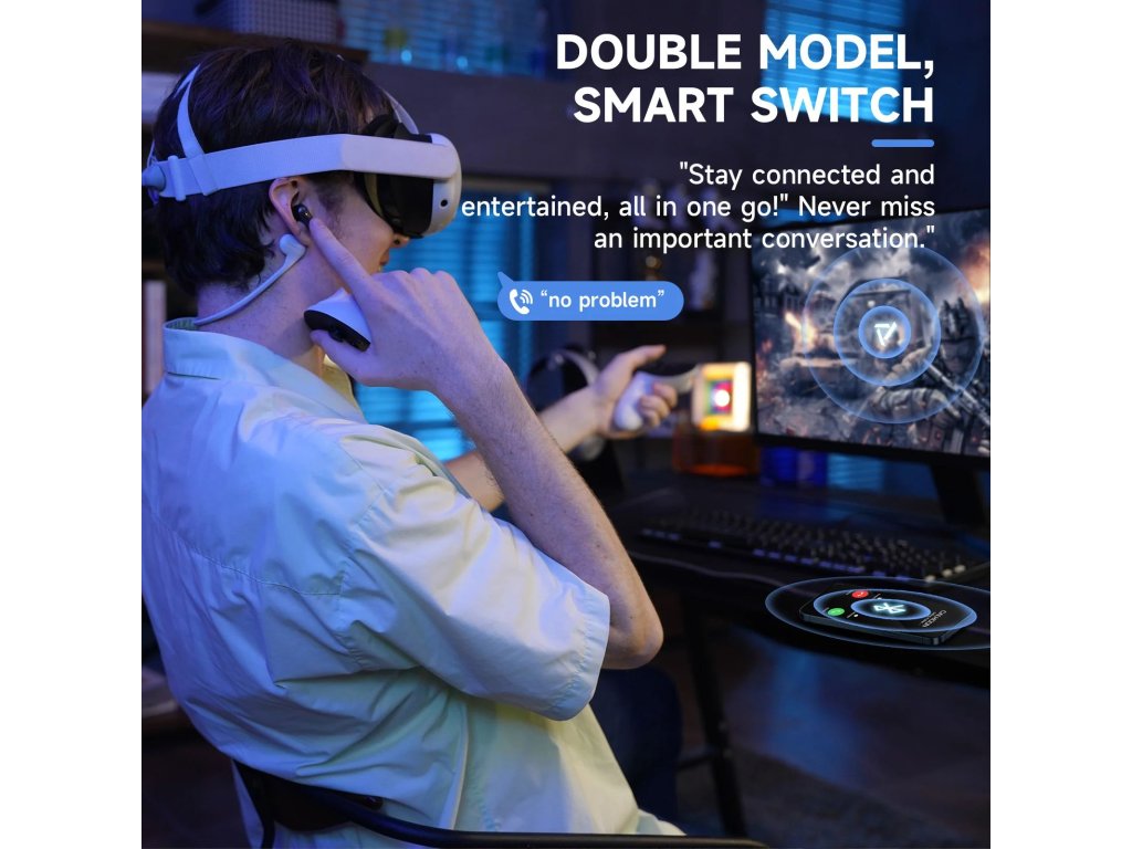 Bezdrátová herní sluchátka PrismXR bez zpoždění pro VR Meta Quest 3, 3S, 2, Pico Ultra, PS5, PC USB-C + Blutetooth