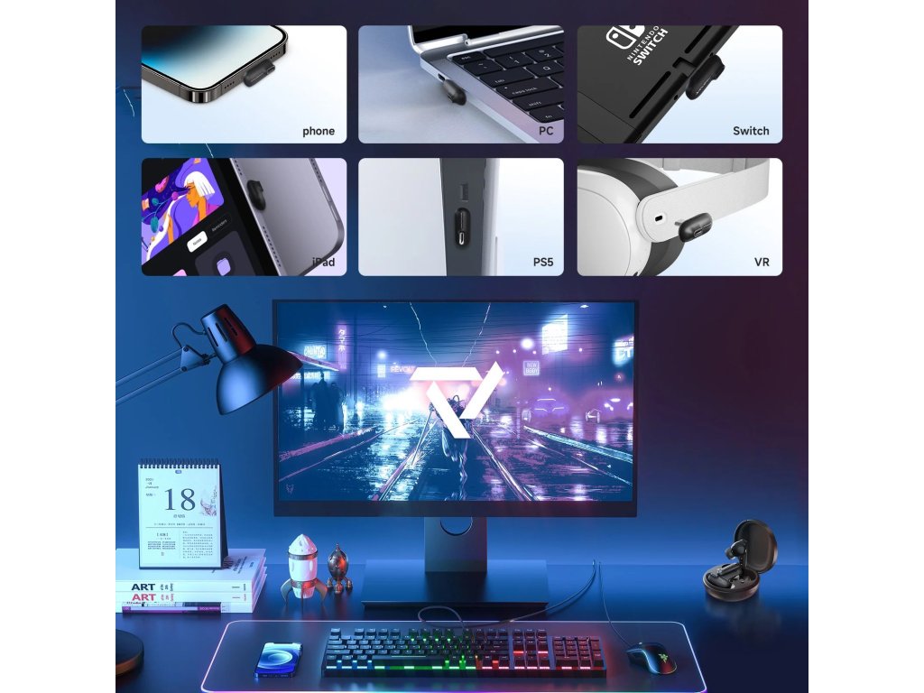 - 27W průchozí nabíjení přes dongle: hrajete a současně nabíjíte svůj headset bez ztráty portu.